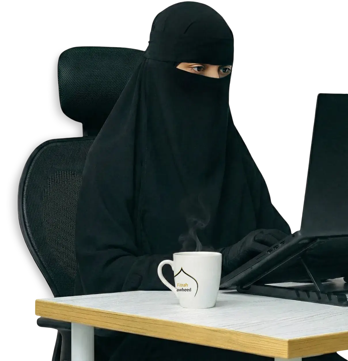 "De vrije vrouw bidt in dik en bedekkende kledij dat de achterkant van haar voeten bedekt tijdens het buigen en neerknielen, en een Khimar (hoofddoek) die haar schouders en haar vorm bedekt, en er verschijnt niets van haar behalve van het gezicht en de handen."